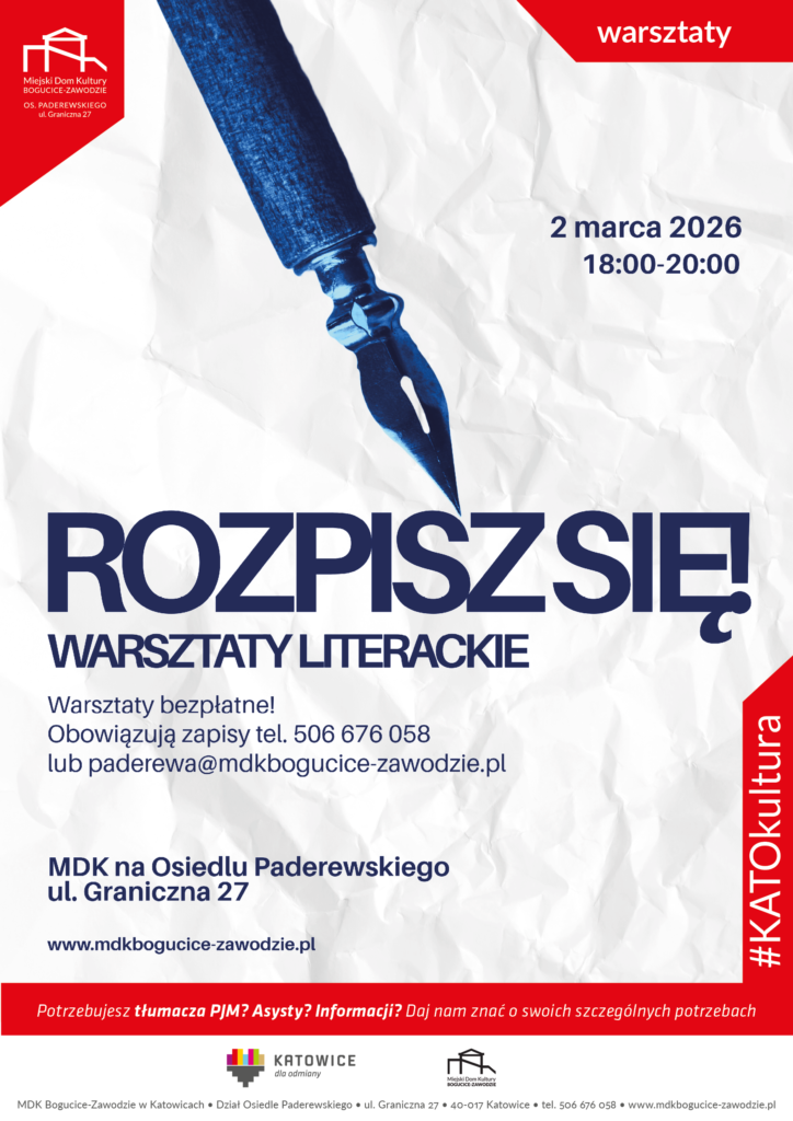 nr tel 506 676 058 lub paderewa@mdkbogucice-zawodzie.pl